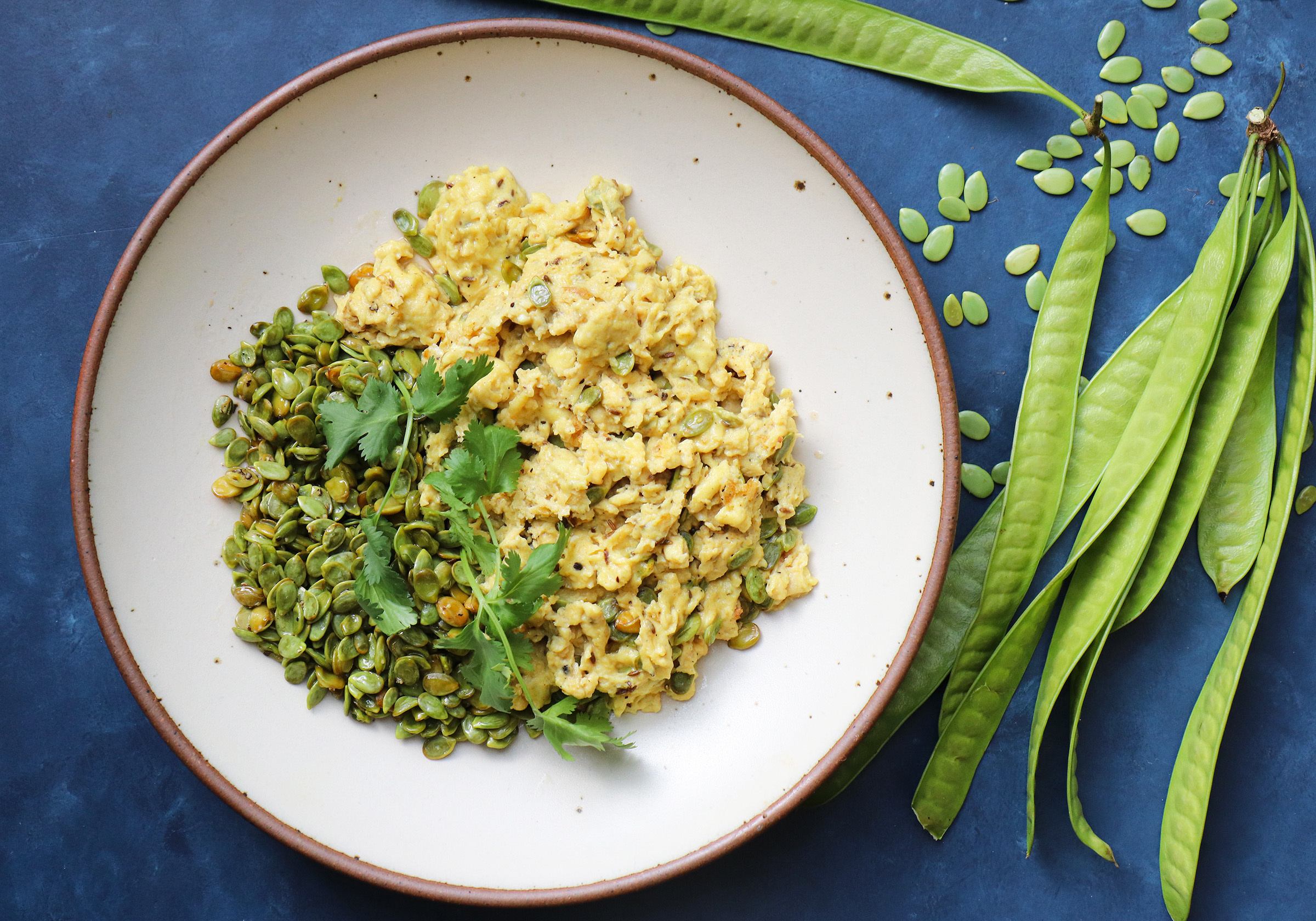 Native to central and Southern Mexico, guajes (pronounced wahes) are the tangy edible flat green legume inside long slender pods. I have spotted them at the Airline farmer’s market from time to time but last weekend, I saw them at the Urban Harvest Market. Often referred to as wild tamarind, they are the size of a tiny lima bean and can be eaten raw or cooked into a stew. The pods and the tiny beans sometimes have a reddish tinge, but they taste the same. Here is a simple preparation of these interesting, delicious beans with eggs.